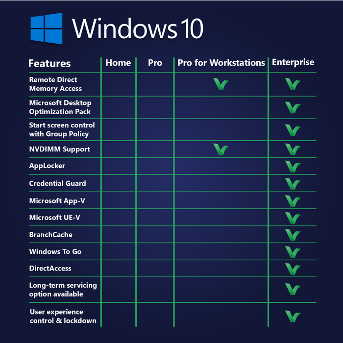 Windows 10 Professional for Workstations is a great option for users whose activities need high-performance workstation PCs and require storage for large amounts of data. It has all the features of Windows 10 Pro together with server-grade process and file transfer speed allowing to maximize the potential of advanced hardware configuration.